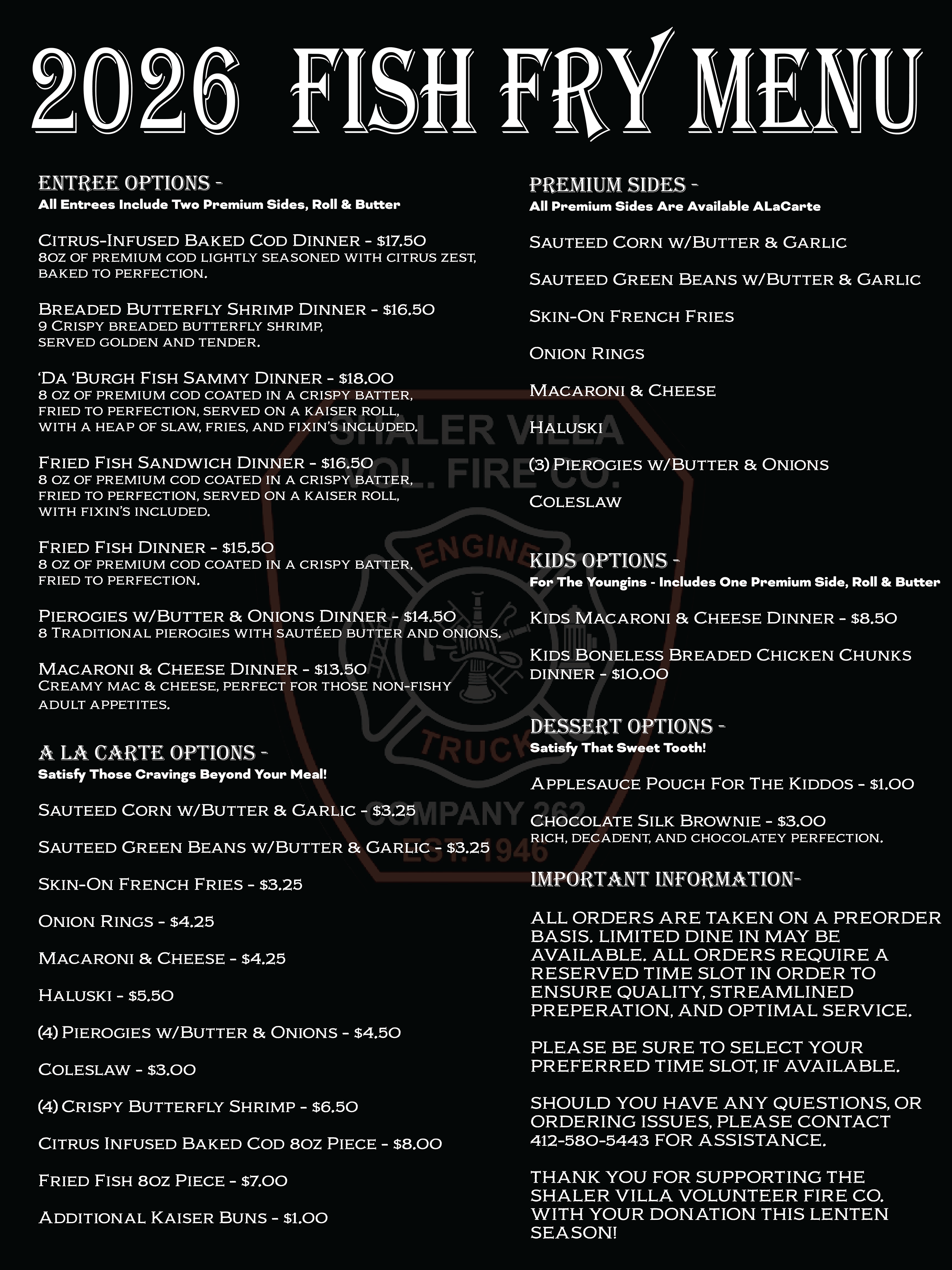 All Orders Are To Be Picked Up At The Firehouse