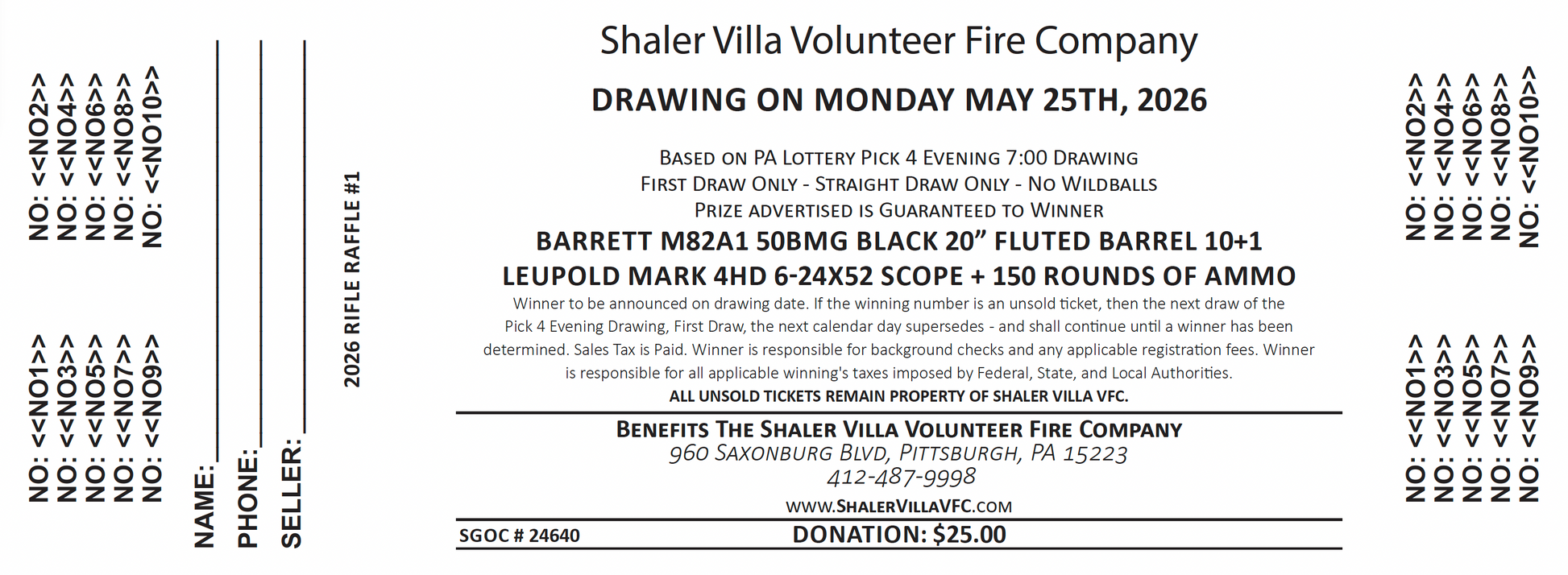 $25.00 PER TICKET - ONLY 1000 BEING SOLD!